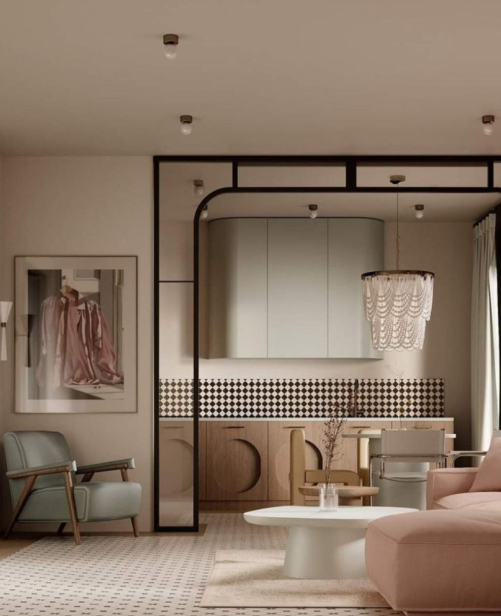 В условиях ограниченной площади квартиры зонирование с помощью межкомнатных перегородок может стать ключом к созданию уютного и функционального пространства. Перегородки помогают выделить гостиную, спальню или рабочую зону в студии, при этом сохраняя ощущение открытости и простора. Например, раздвижные стеклянные перегородки с матовыми вставками обеспечат приватность и одновременно позволят свету свободно проникать в каждую часть квартиры. Встраиваемые перегородки с полками станут отличным способом организовать дополнительное место для хранения книг или декоративных предметов.