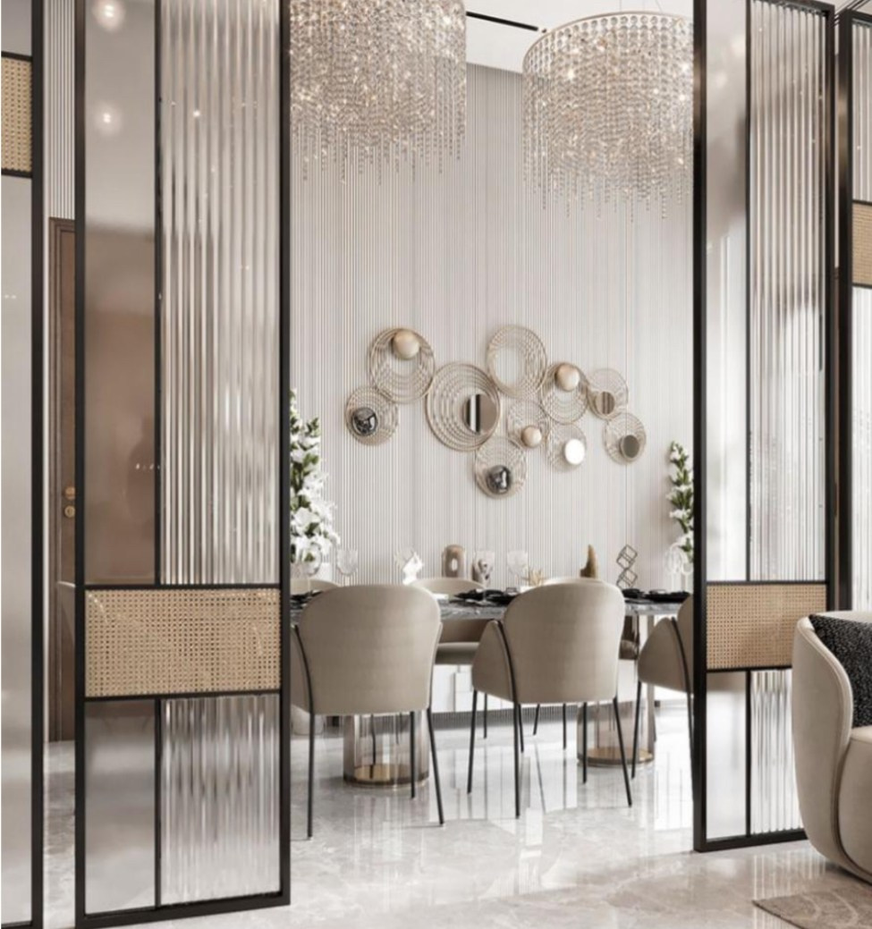 Преимуществом раздвижных перегородок является экономия места и возможность регулировки освещенности и приватности. Они часто используются для разделения гостиной и кухни, спальни и рабочего кабинета, создавая комфортные зоны для отдыха или работы.